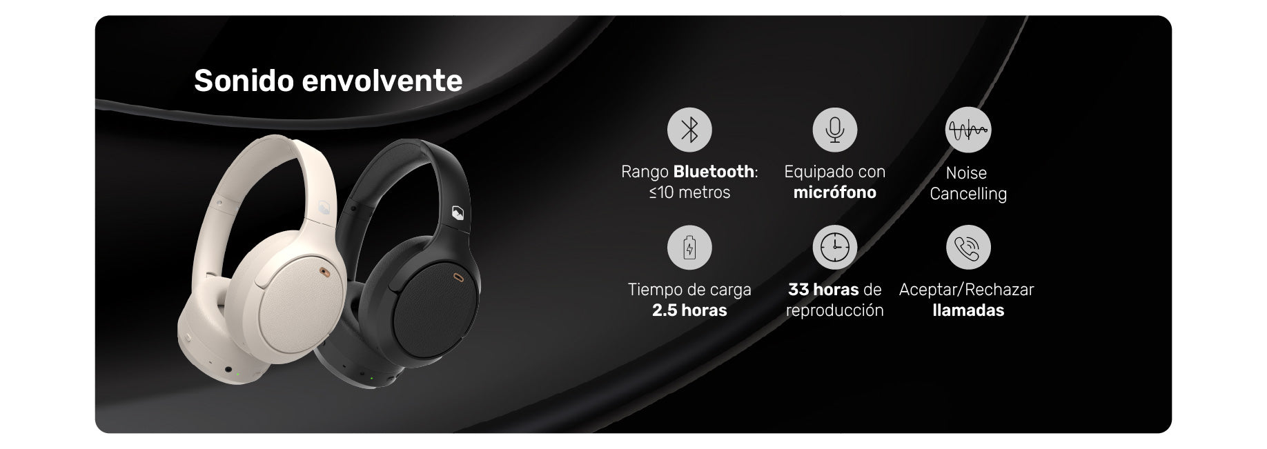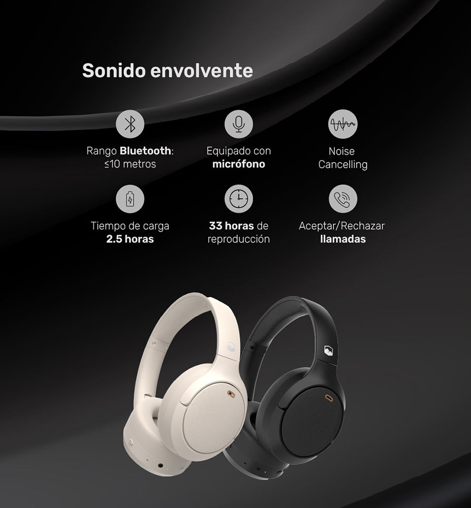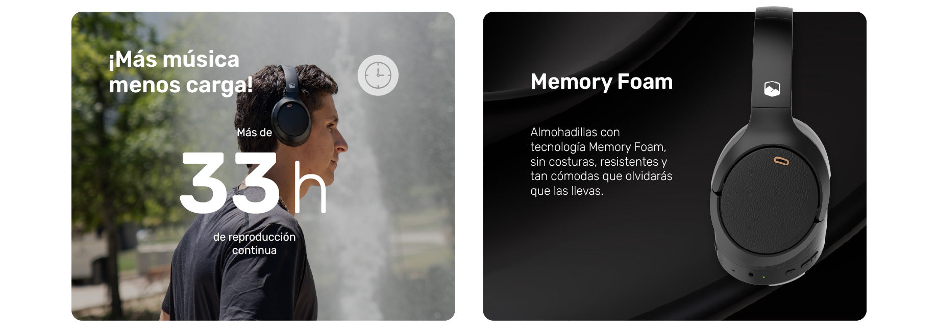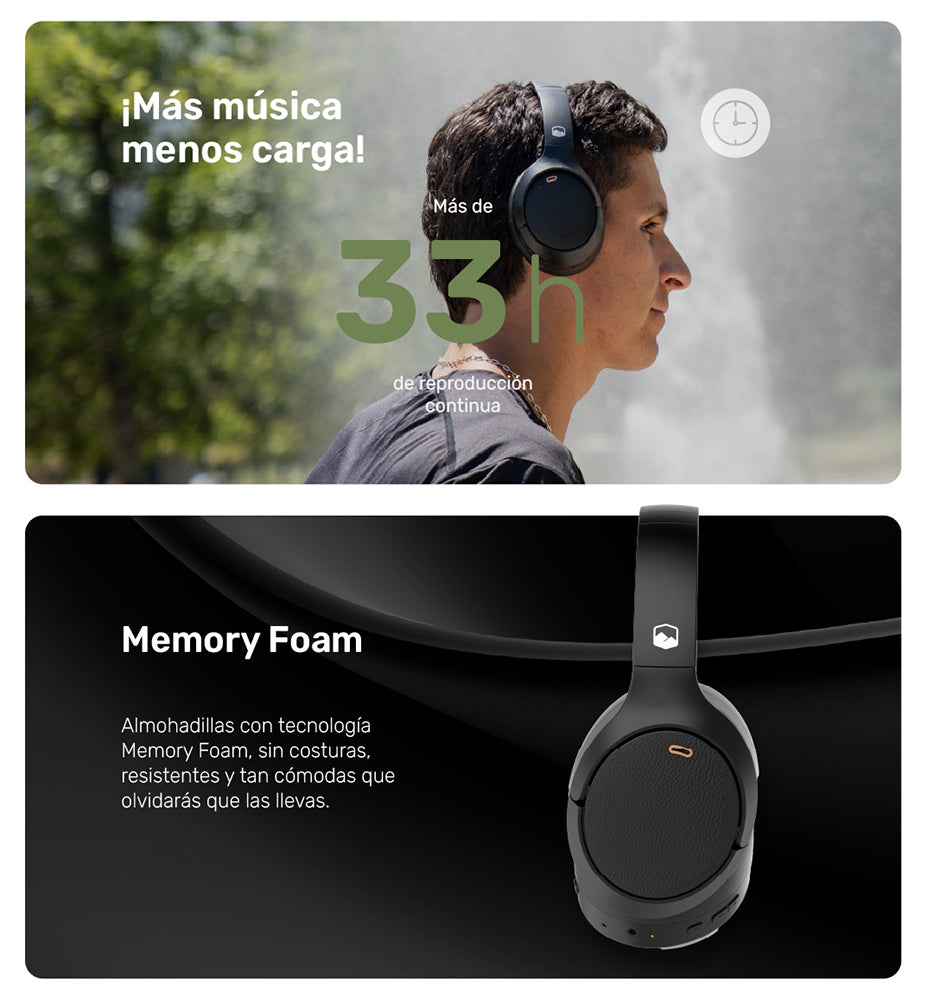 • Duración batería por 33 horas de uso continuo y 29 con ANC activado