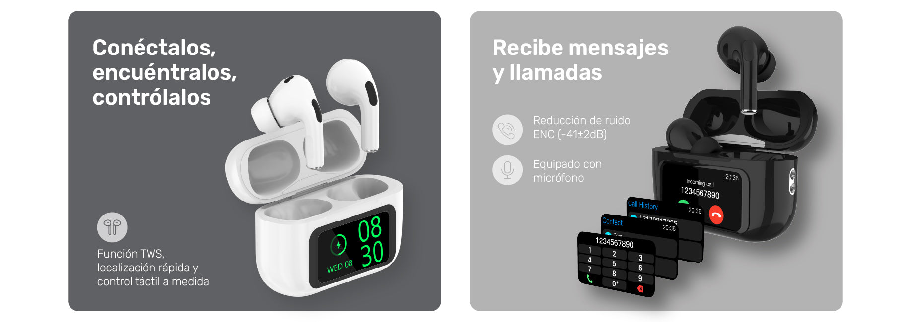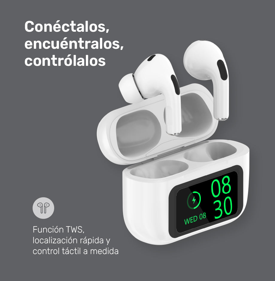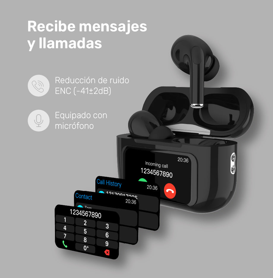• Incluye: Estuche de carga inalámbrica con pantalla táctil