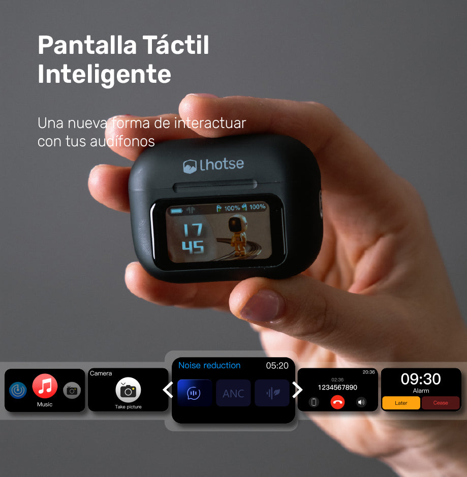 La tecnología de Cancelación de Ruido (ANC) elimina las distracciones del mundo exterior, mientras que la reducción de ruido ENC (-41±2dB) garantiza llamadas perfectamente claras. Su pantalla táctil inteligente te permite controlar cronómetro, ecualizador, modos gaming, calendario y configuraciones de audio con un simple toque.