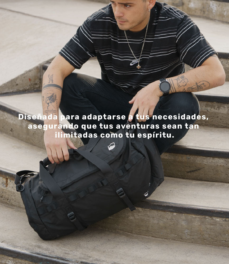 El Bolso Deportivo Duffel Bag tiene costuras resistentes para acompañarte en todo momento. Su tamaño es ideal tanto para viajes de fin de semana, como para tus caminatas.
