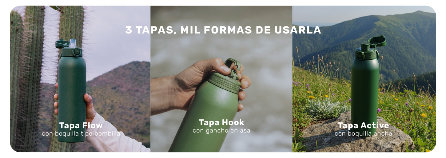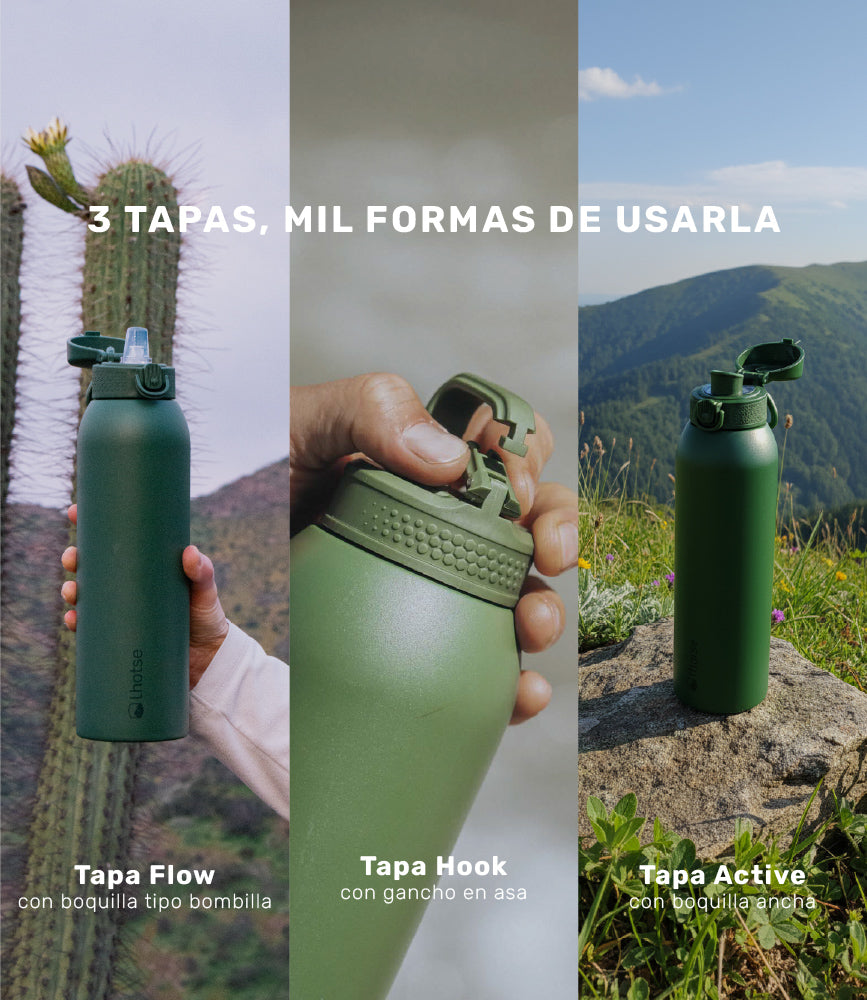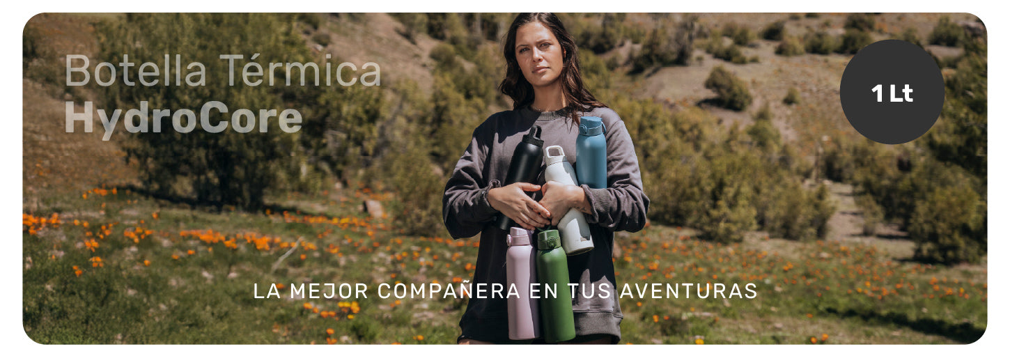 Botella Térmica Agua Acero Inox 3 Tapas HydroCore 1Lt Lhotse
