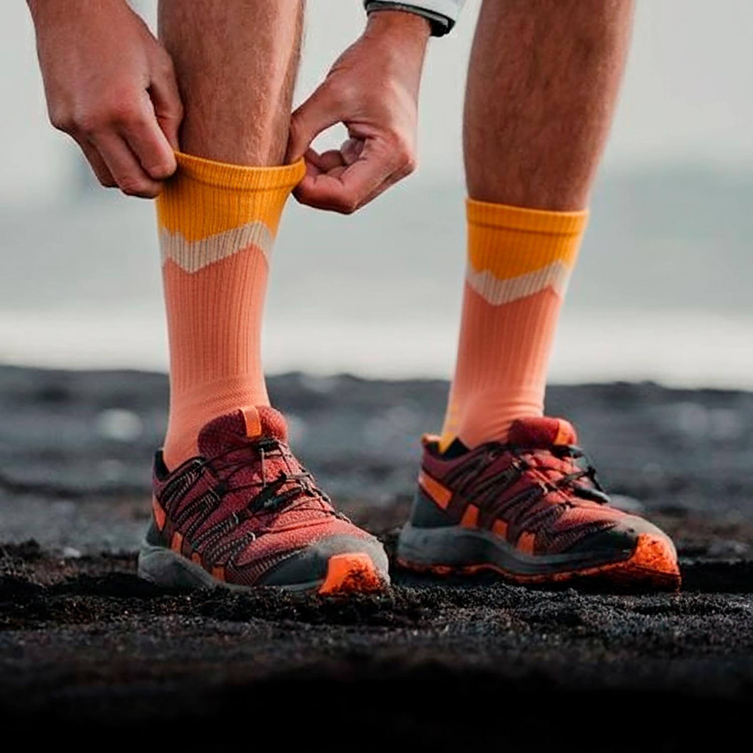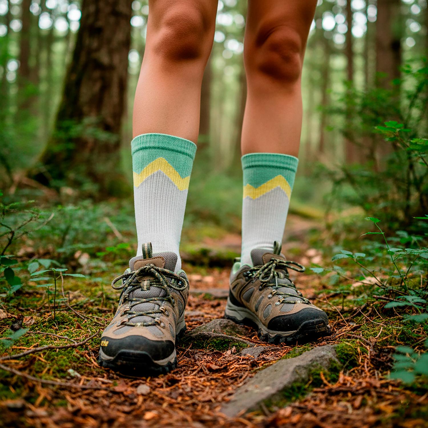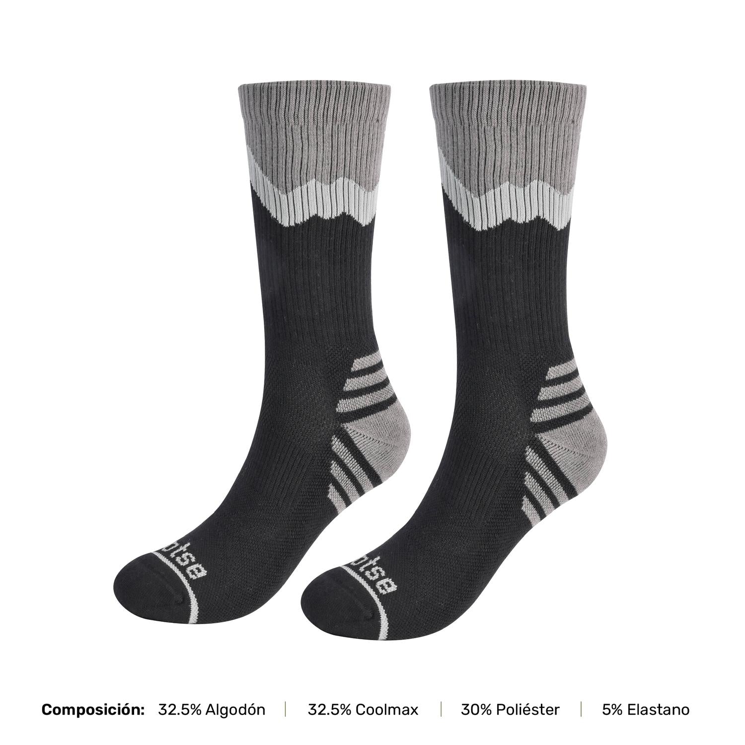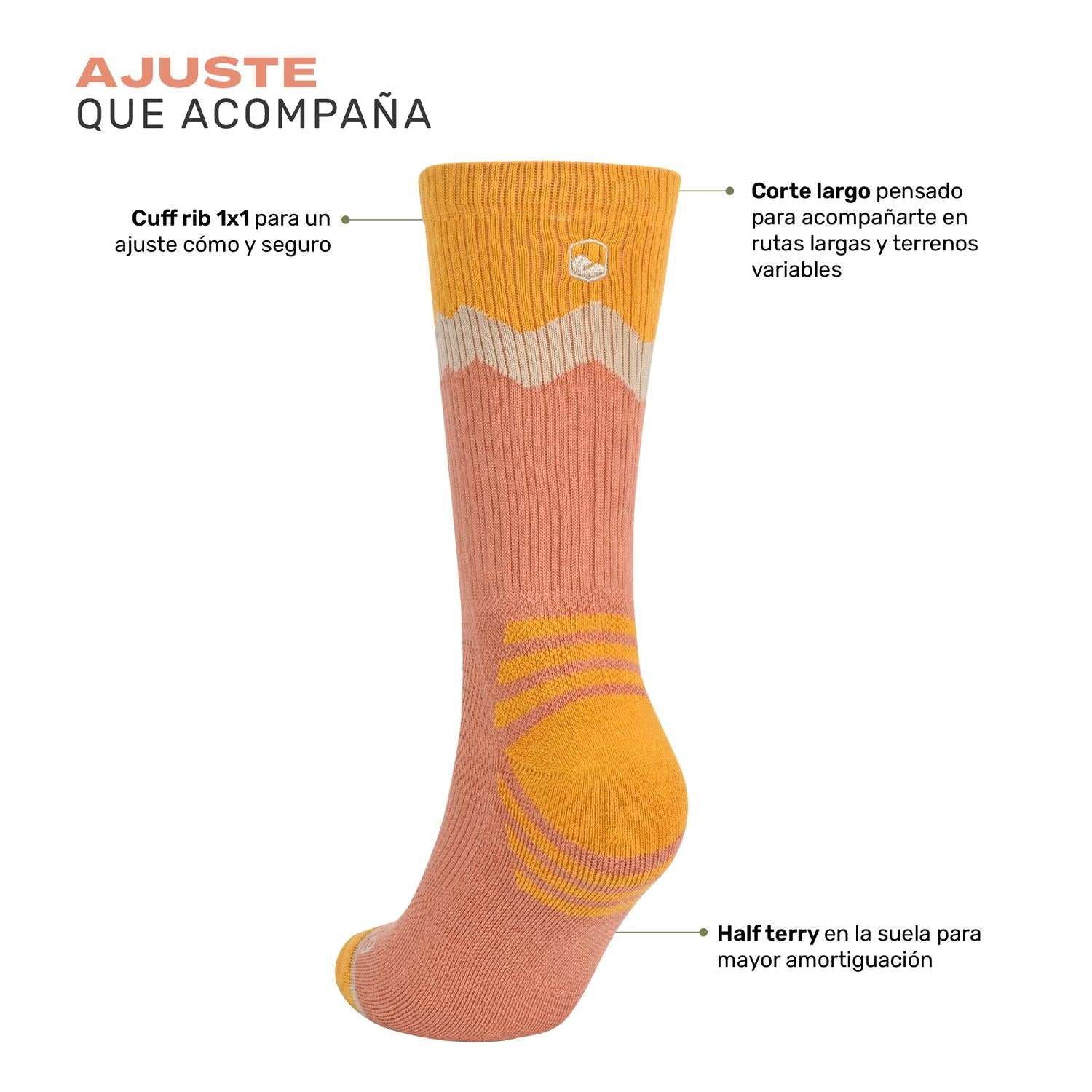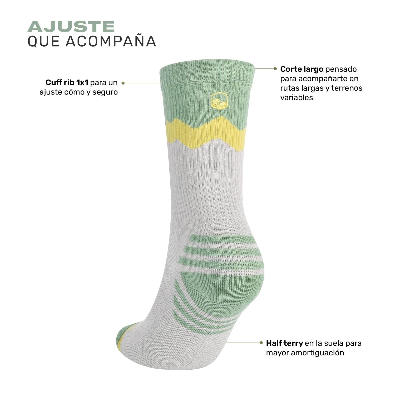 El calcetín ANDOR es el compañero ideal para rutas de trekking, caminatas prolongadas y actividades outdoor de alta exigencia. Diseñado con un corte largo y una estructura técnica optimizada, entrega mayor protección, estabilidad y soporte en la zona del tobillo y la pierna, manteniendo la comodidad incluso en terrenos variables y jornadas largas.