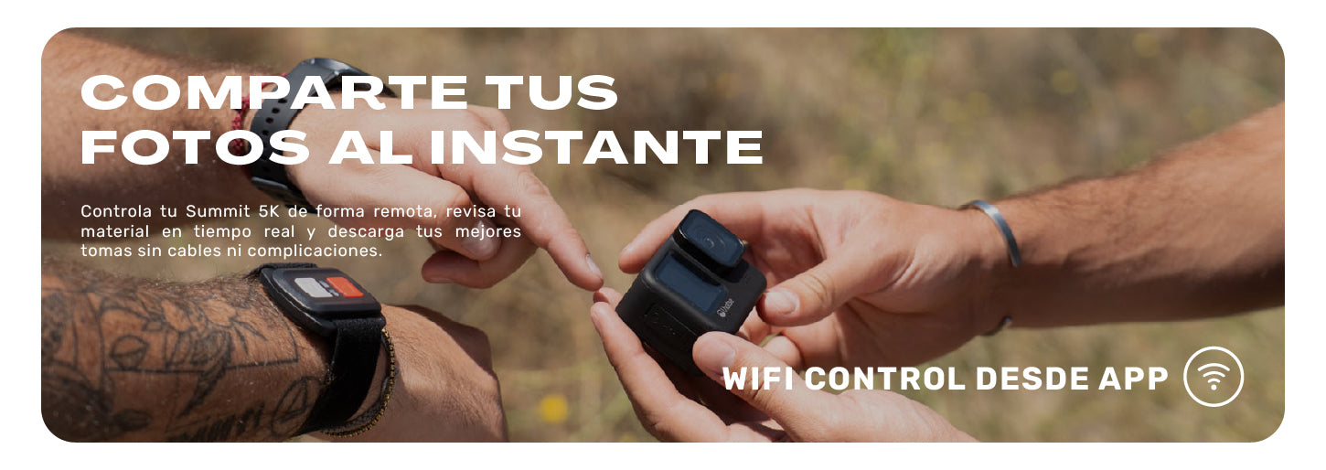 El kit definitivo para la acción: No gastes de más. La Summit 5K incluye un completísimo set de accesorios para montarla fácilmente en tu casco, bicicleta o donde tu creatividad te lleve. Además, incluye un práctico control remoto Bluetooth para que nunca te quedes fuera de la toma.