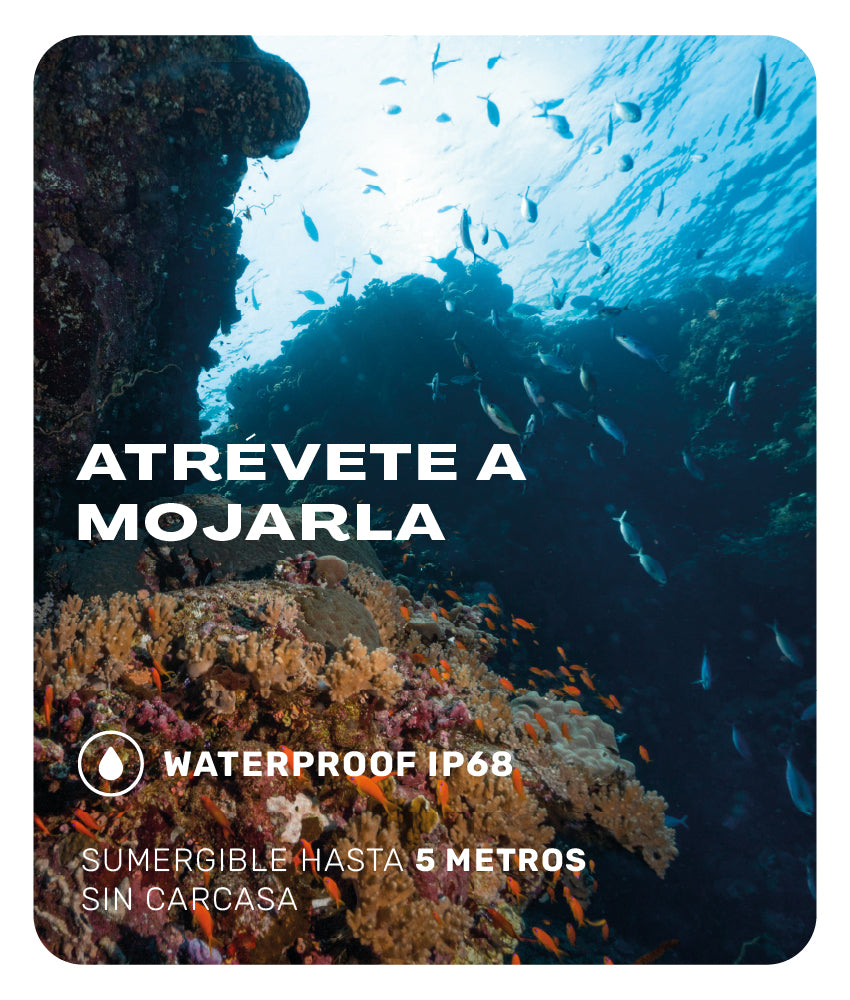 • Resistencia al Agua: Cuerpo impermeable certificado IP68 (Sumergible hasta 5 metros sin carcasa).
