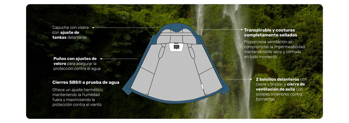 Proporciona ventilación sin comprometer la impermeabilidad, manteniéndote seco