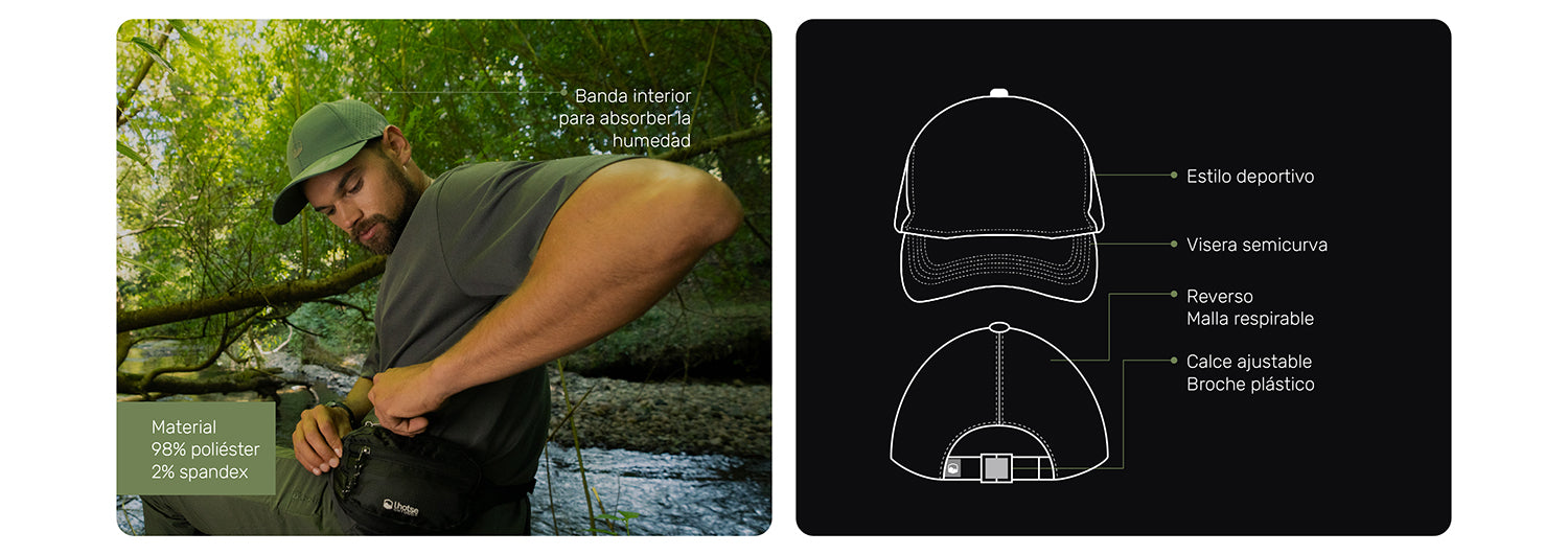 Diseñado para cualquier deporte, el Jockey Deportivo FlexFlow DryFit de Lhotse es tu mejor aliado. Fabricado con 98% poliéster y 2% spandex, su tecnología DryFit y banda para el sudor absorben la humedad para mantenerte fresco y cómodo. Ligero, ventilado y con correa ajustable, ofrece el ajuste perfecto para cada desafío.