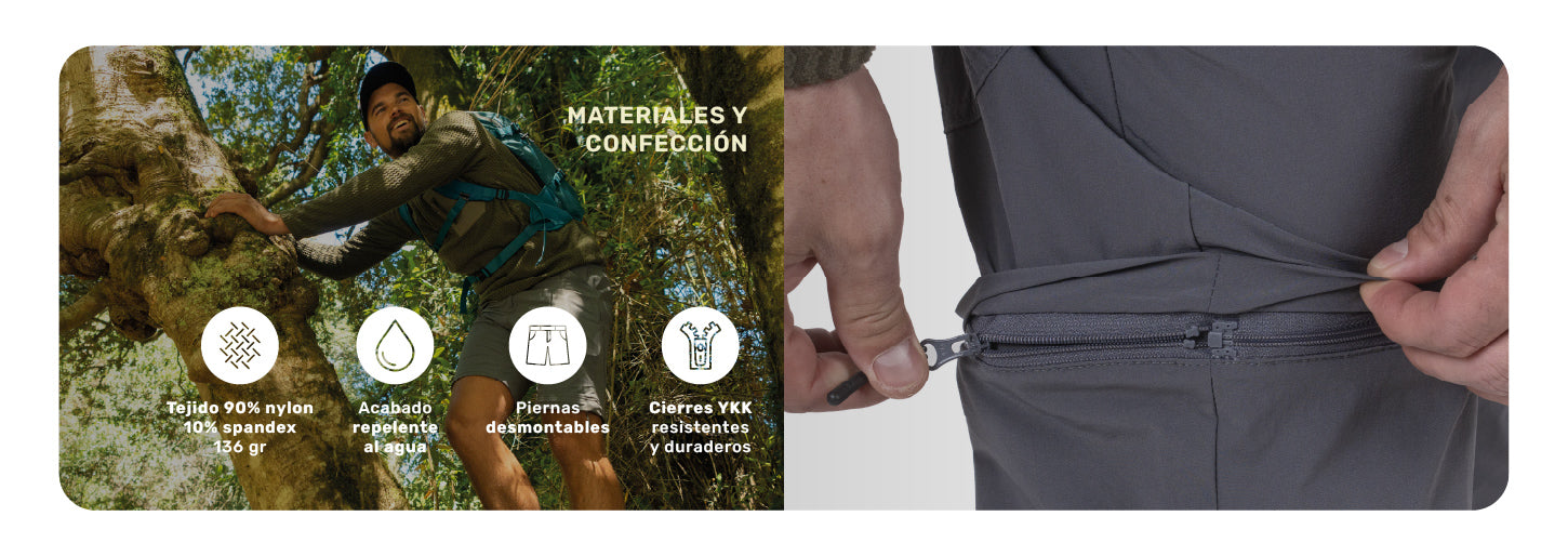 • Piernas desmontables: Convierte el pantalón en shorts en segundos, adaptándose fácilmente a cambios en el clima.