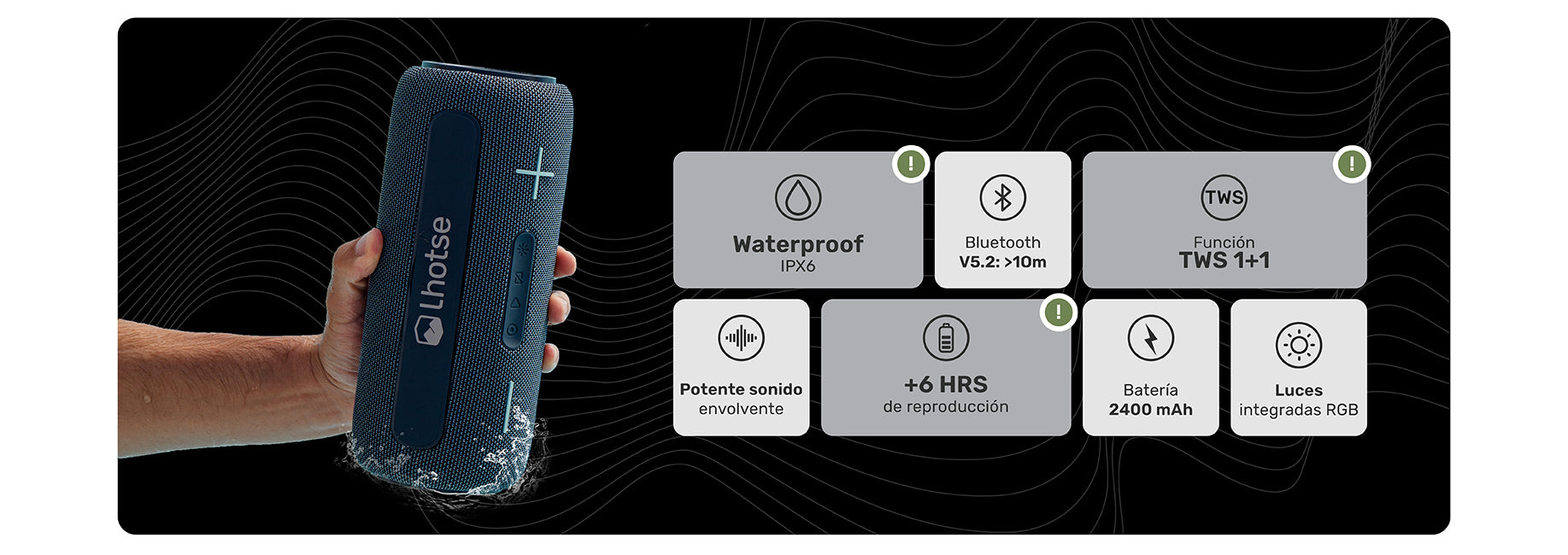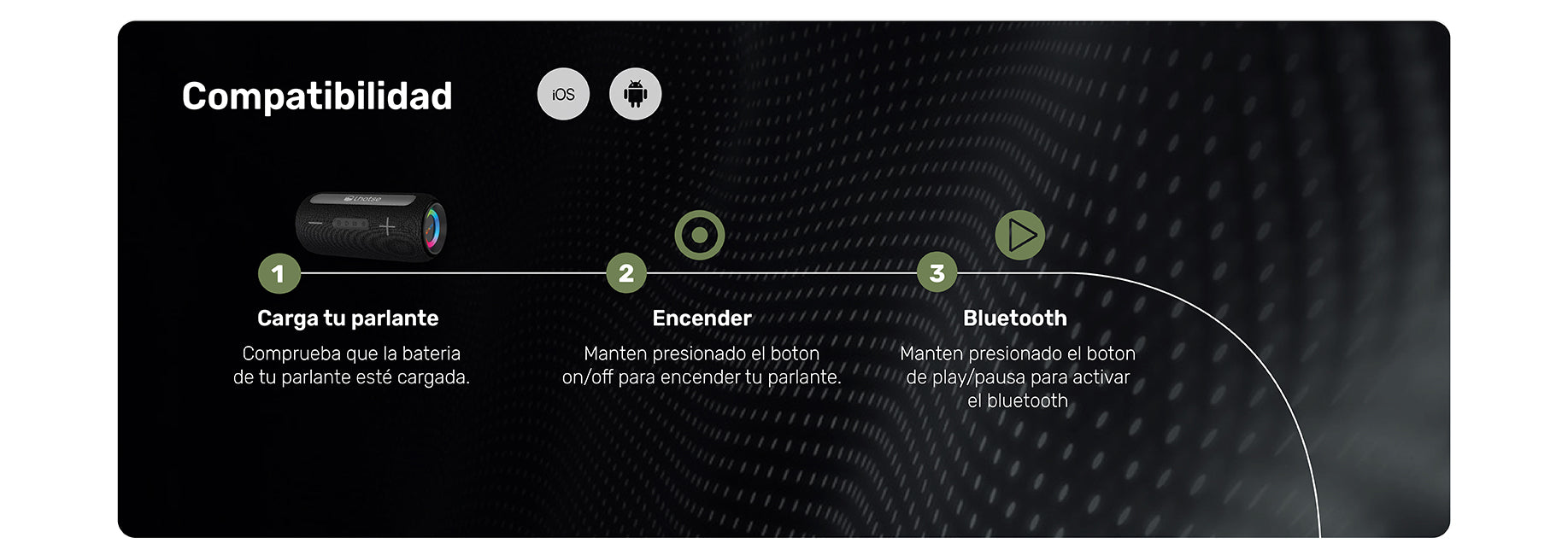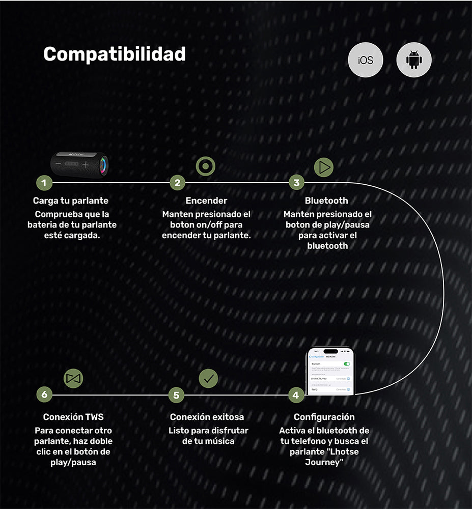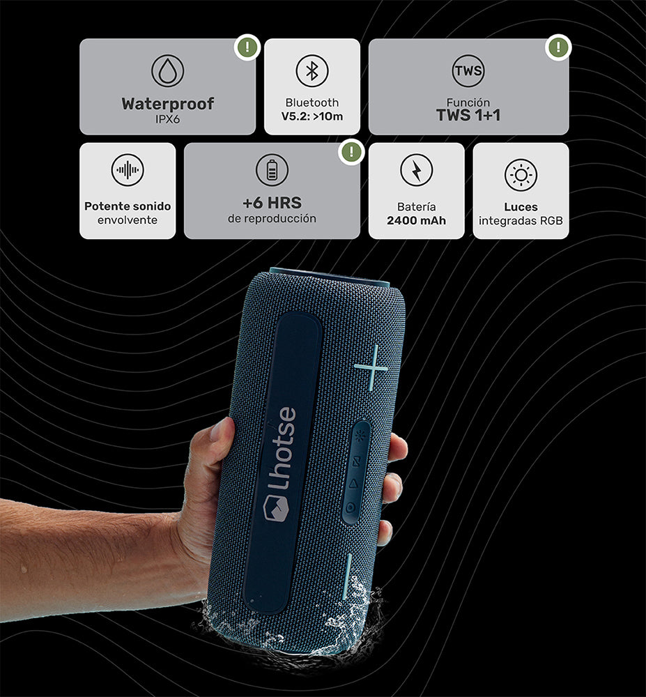 • Emparejamiento TWS: Conecta dos parlantes para sonido estéreo.
