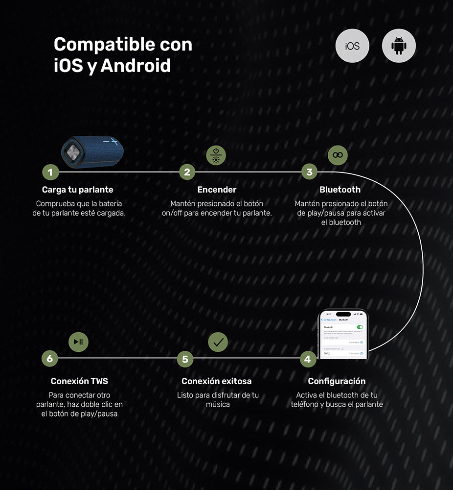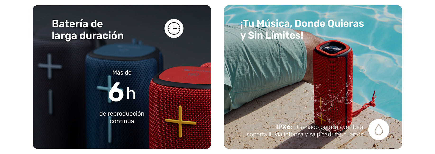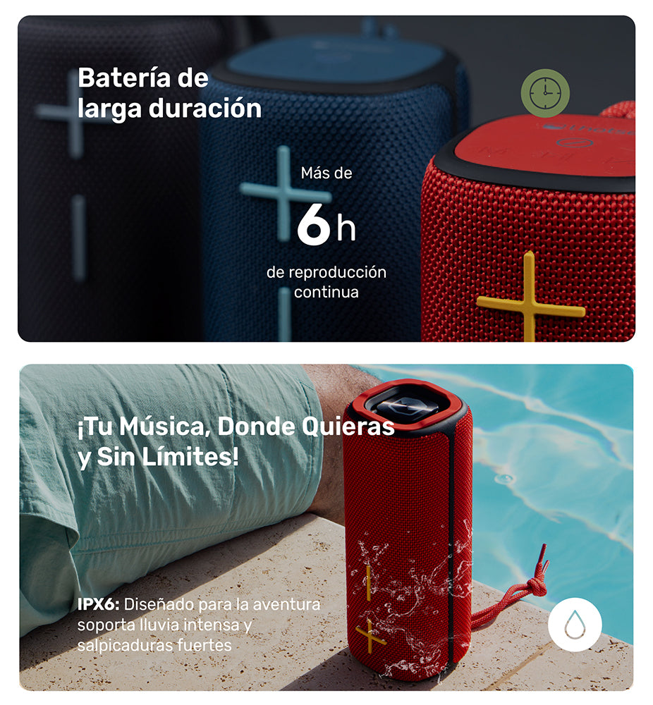 • Emparejamiento TWS: Conecta dos parlantes para sonido estéreo.