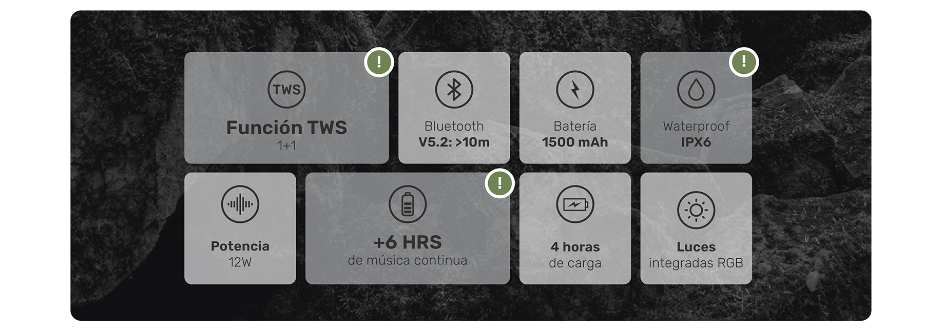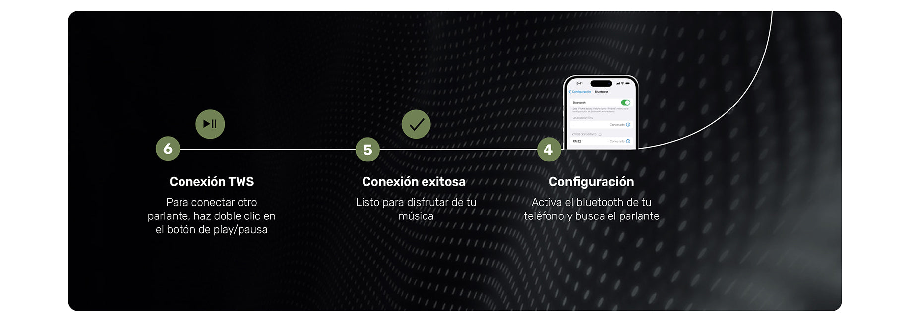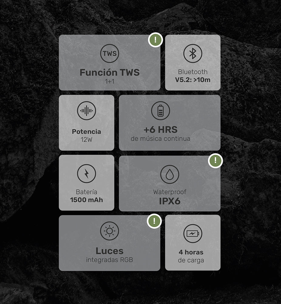 • Emparejamiento TWS: Conecta dos parlantes para sonido estéreo.
