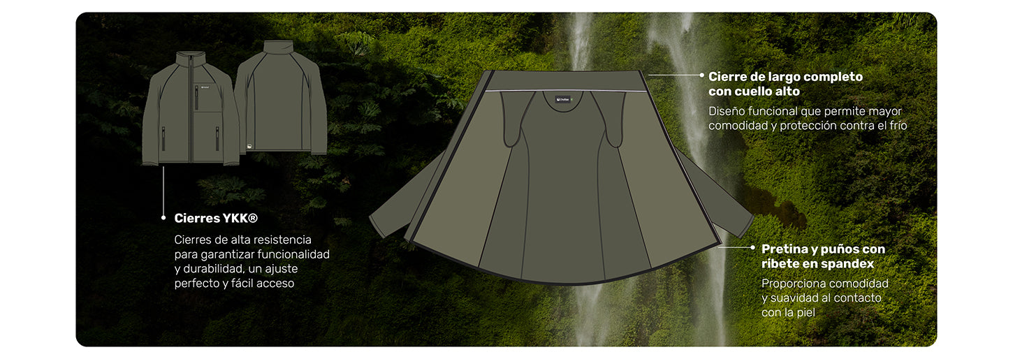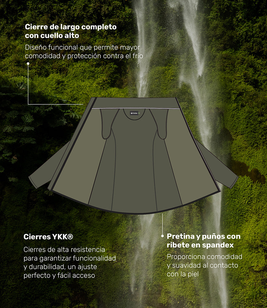 • Cierre de largo completo con cuello alto: Diseño funcional que permite mayor comodidad y protección contra el frío.